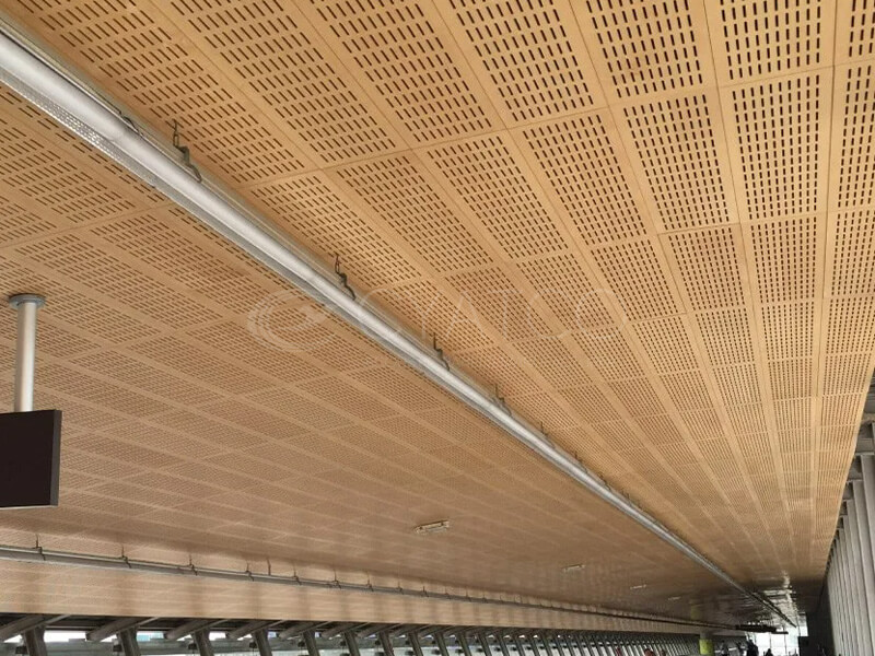 The perforated wooden acoustic panels are specially designed for acoustic optimization. Through scientifically calculated perforation ratio and aperture size, they can precisely control the absorption and transmission of sound, providing excellent acoustic solutions for conference rooms, concert halls, and other places. The wooden material of the wooden acoustic panels gives the space a natural and warm atmosphere, making every communication or performance clearer and more pleasant.