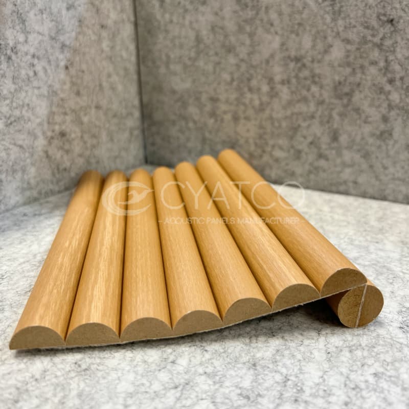 Using MDF as the base material, through special processing techniques, it can be made flexible and bendable. It can be attached to curved walls, columns, or irregular ceilings, solving the problem that traditional hard wall panels cannot adapt to curved structures.
