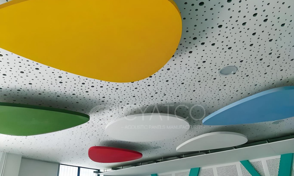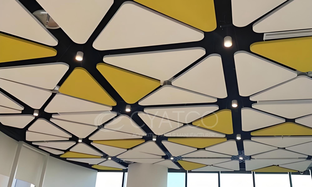 With a sound absorption coefficient reaching NRC 0.85, these panels are specifically engineered for large spaces. Their unique suspension structure combined with fiberglass material facilitates efficient sound absorption while optimizing sound field distribution.